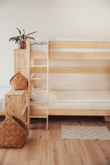 Ubytovací část statku nabízí komfortní a flexibilní zázemí až pro 29 hostů (s možností rozšít až pro 34). K dispozici je 8 ložnic a 5 koupelen (6 apartmánů), přičemž v domě najdete i 2 samostatné toalety pro větší pohodlí. Pro větší skupiny je možné využít přistýlky a matrace, které lze umístit například do společenské místnosti nebo ložnic.